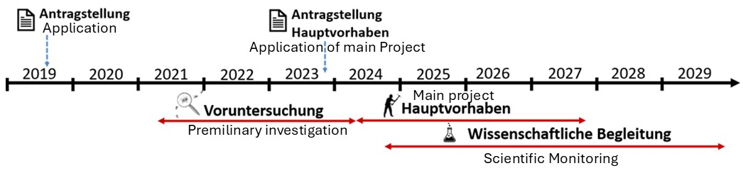 In addition, the preliminary investigation results form the basis for the associated accompanying scientific investigations, which serve to verify the success of the measures. In the implementation phase of the main project corresponding measures will be implemented as examples and scientifically monitored.