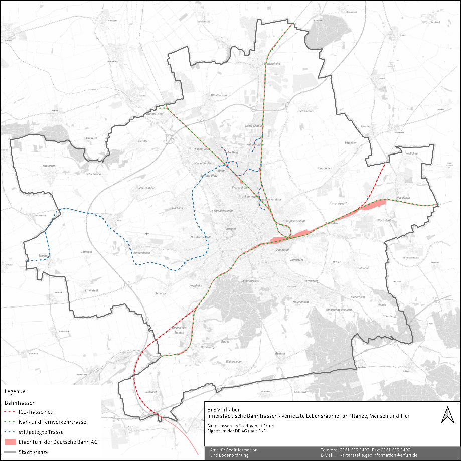 This requires new approaches, meanwhile meticulously considering the increasing competition for space in cities makes it necessary to enable multifunctional use. Numerous active and inactive train lines intersect the urban region in Erfurt (see Figure 1). However, their potential for biotope connection has not yet been investigated.